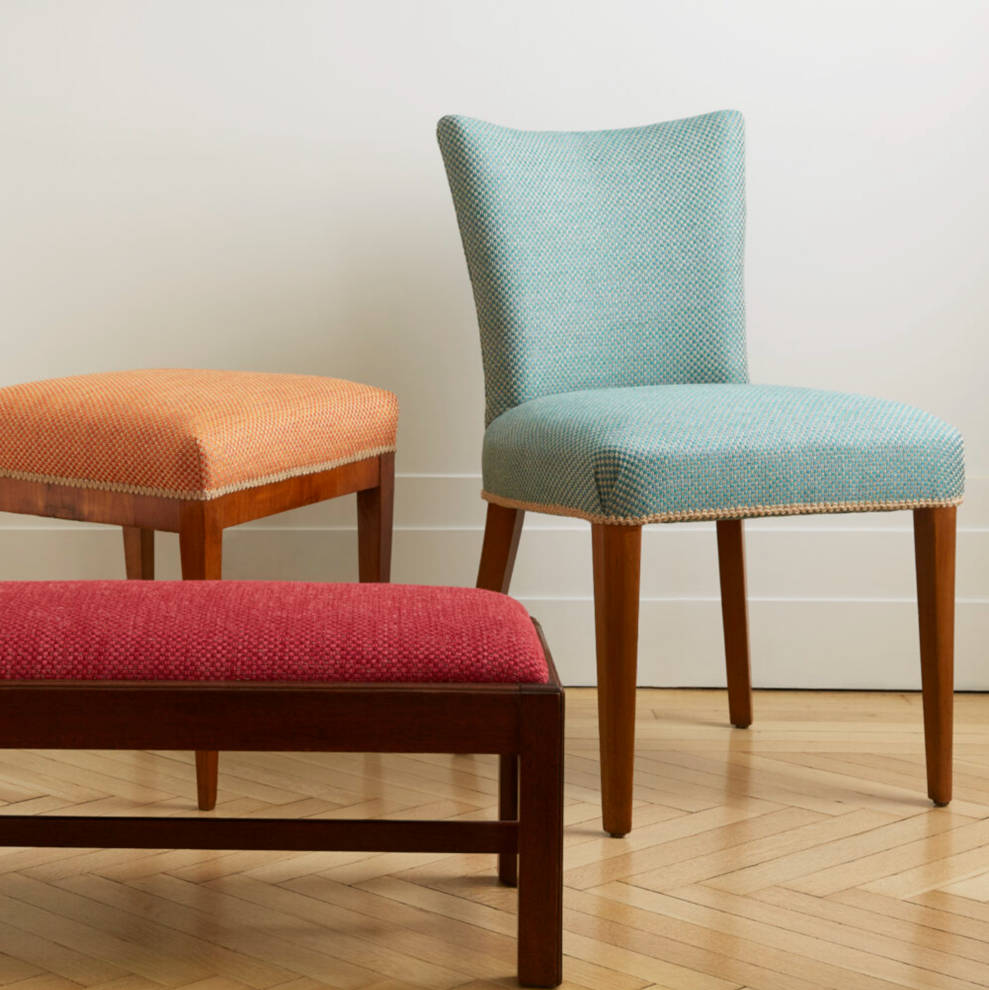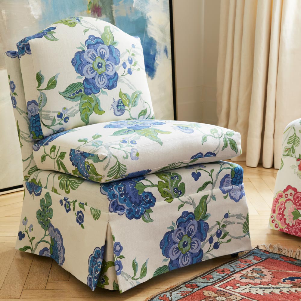This collection centres on the uplifting print, Somerset, which it is named after. Printed on 100% Irish linen and also available as a wallpaper, several colourways of this fresh floral set the tone for the collection. Elsewhere in the collection, discover the versatile Kemble, a classic woven with a twist - it's reversible - reworked in new colours and Angelica, a pretty embroidered linen ideal for curtains and cushions.