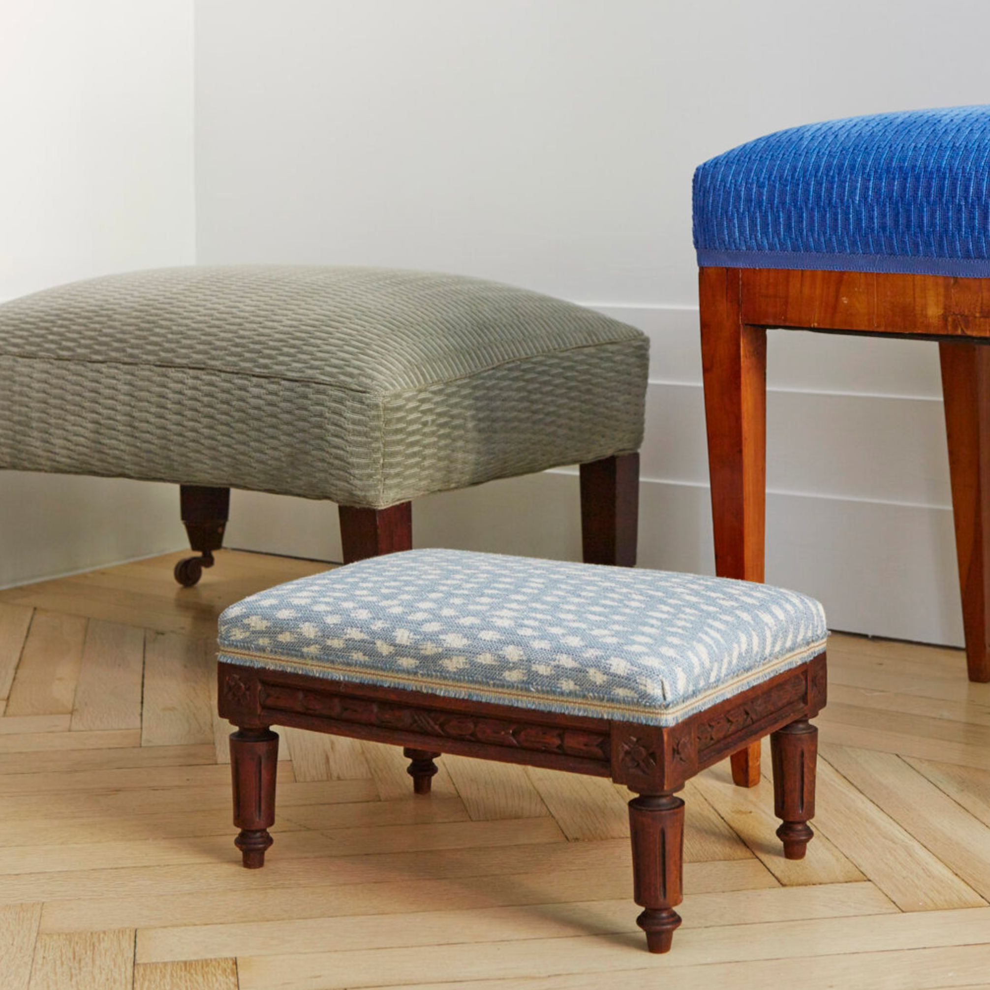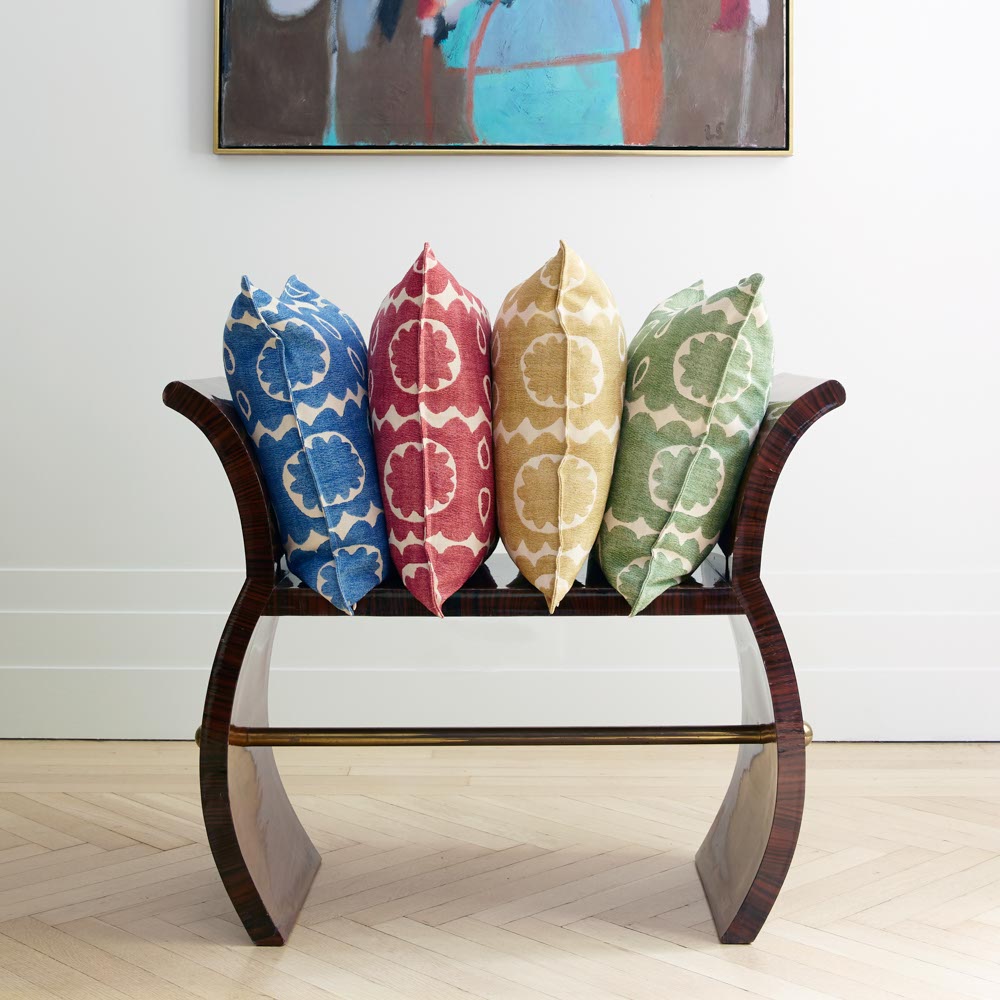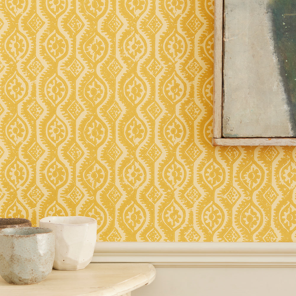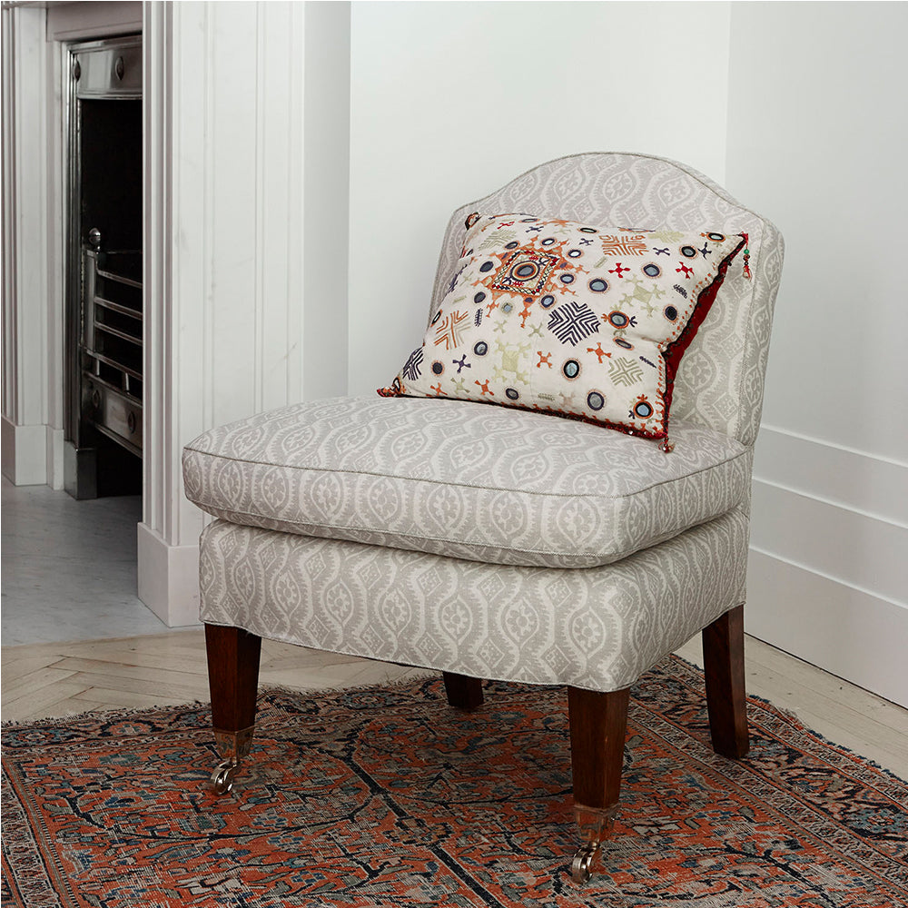 The Somerton Collection includes two colourful designs from the Peggy Angus archive: Small Damask and Diamond, both printed on Irish linen. Elmont is another contemporary print from this collection and sits alongside Elystan, a distinctive velvet. All designs are available in a variety of colours.