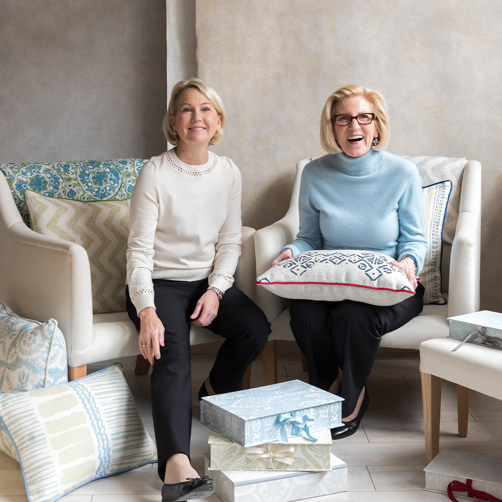 Anne Dubbs and Liz Downing met in 1994, two American women living in London. Anne had a background in textiles from years working with Eldo Netto at Cowtan and Tout as well as a strong vision of a textiles company inspired by the vintage and historic textiles she collected.
